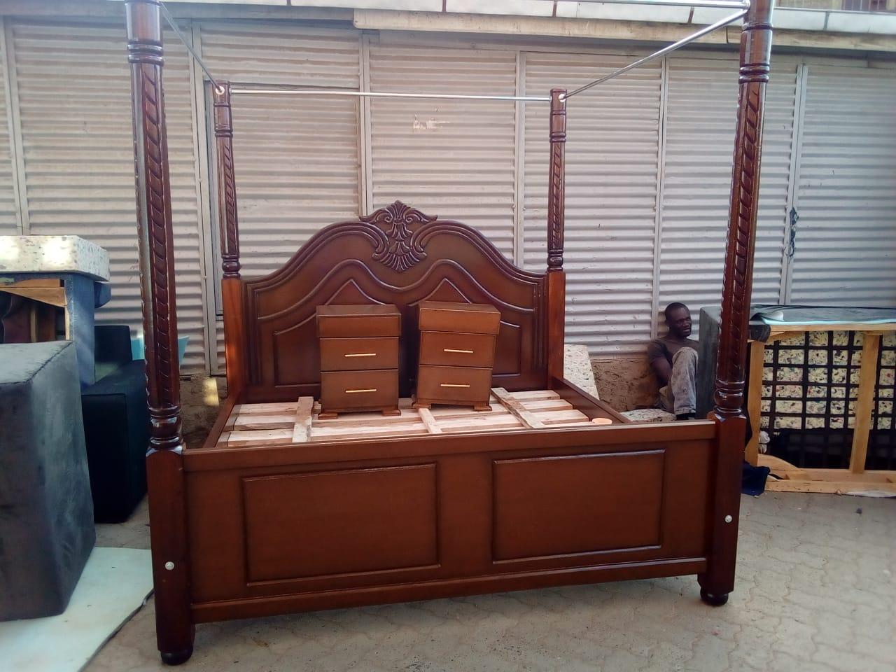 5x6 Wooden Bed with Mosquito Net Pillars – Available in Kenya This durable 5x6 wooden bed is crafted from high-quality hardwood and is perfect for homes across Kenya, including Nairobi, Mombasa, Kisumu, and beyond. It features extended corner pillars designed to support a mosquito net, offering both comfort and protection in malaria-prone areas. Ideal for traditional or modern bedrooms, this bed combines style, strength, and functionality for Kenyan households. Available for delivery in Nairobi, Nakuru, Eldoret, Kisii, and other major towns in Kenya.