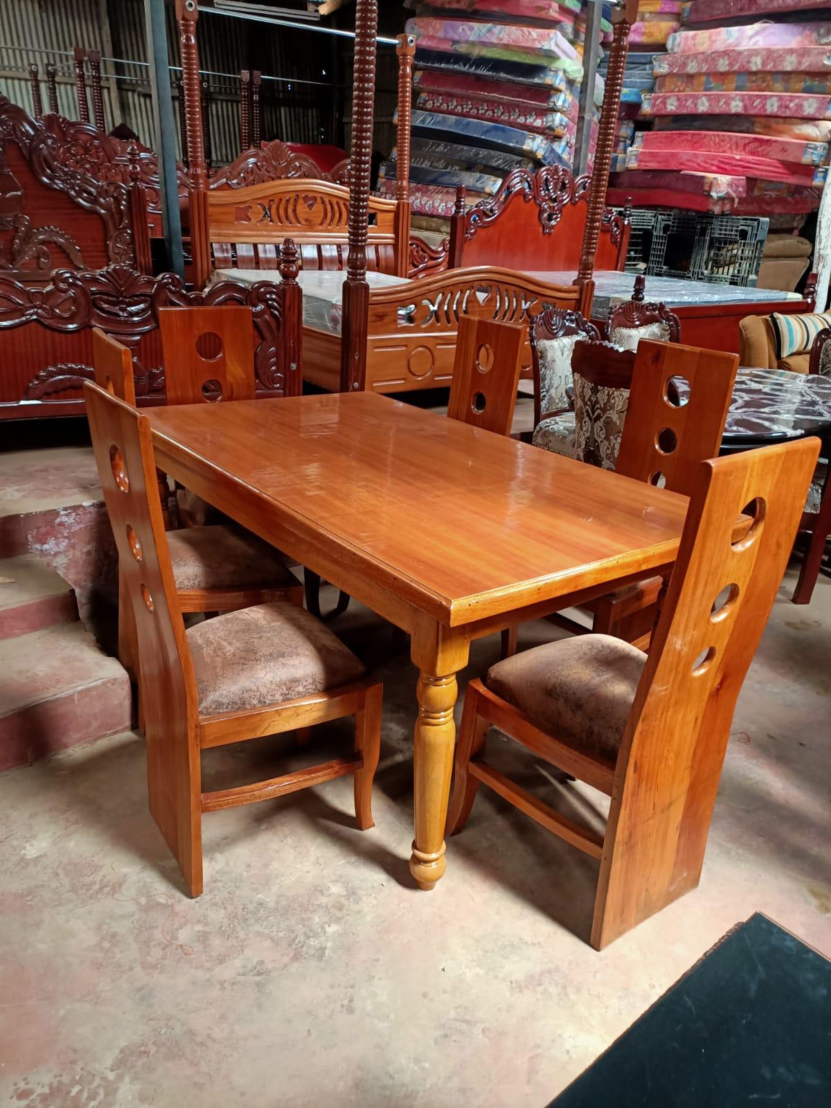 The 6 seater Tito dining table is made of pure hardwood.The table top is made of refined block board to ensure longevity.Buy this dining table for a superior dining experience.