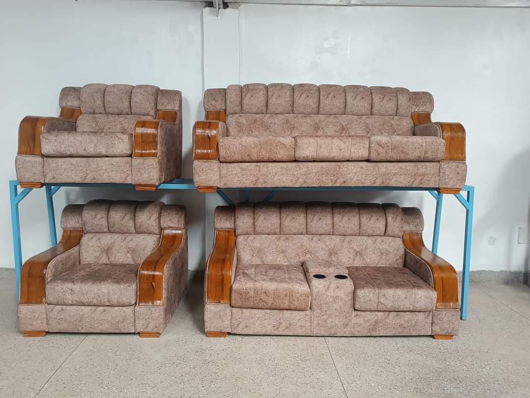 Premium Space-Saving Sofa Set with Mahogany Arms & HD Memory Foam - Made in Kenya Maximize comfort without compromising on space with this innovative space-saving sofa set, featuring elegant hardwood mahogany armrests and luxurious HD memory foam cushions. Proudly handcrafted at Sofa Hub Kenya, Karen, this versatile furniture collection is perfect for modern living. Key Features: Solid hardwood mahogany arms - Rich wood accents for timeless elegance HD memory foam cushions - Superior comfort and support that contours to your body Space-saving design - Compact footprint ideal for apartments and smaller living rooms Complete 7-seater set: 3-seater sofa, 2-seater loveseat with cup holders, and 2 single seats Plush beige upholstery with elegant textured fabric Channel-tufted backrest design for added visual appeal and comfort Cup holder console on 2-seater for convenience Durable construction - Built to last with quality craftsmanship Made in Kenya - Supporting local furniture manufacturing excellence Why Choose This Set: This space-efficient sofa collection combines functionality with luxury, featuring premium HD memory foam that provides exceptional comfort while maintaining its shape. The mahogany wood accents add a touch of sophistication, making it perfect for contemporary homes. Ideal For: Modern apartments, compact living spaces, family rooms, rental properties, offices, and anyone seeking quality furniture that maximizes space without sacrificing comfort or style. Smart Living, Superior Comfort - Handcrafted at Sofa Hub Kenya, Karen