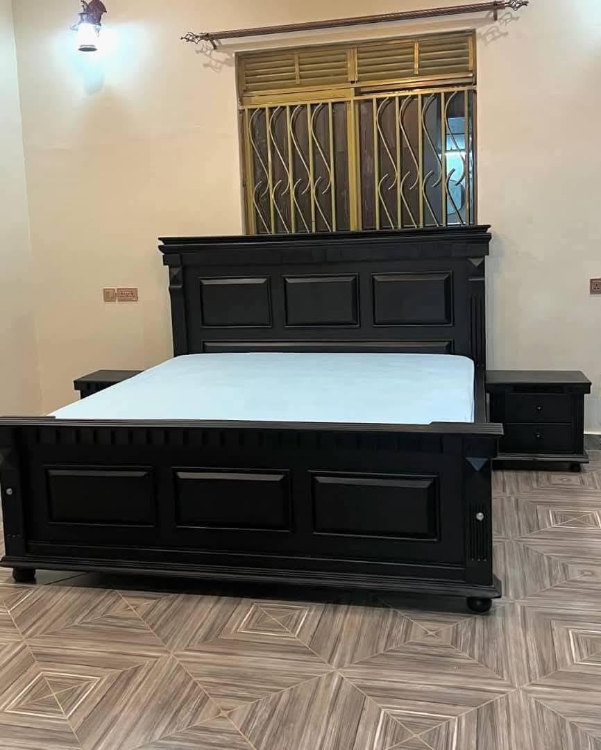 Elevate your bedroom with this refined black wooden bed frame set, thoughtfully designed for homeowners along Ngong Road, Karen, and Lang’ata who value both structure and timeless style. This 3-piece ensemble combines a solid wood bed frame with two matching nightstands, creating a cohesive and practical setup that suits modern Kenyan homes—whether you're furnishing a spacious master bedroom in Karen or upgrading a well-planned apartment along Ngong Road. At the core of this set is its solid hardwood construction, built to handle daily use while maintaining structural integrity over time. Unlike lighter composite alternatives, the dense wood frame offers dependable support, reduced creaking, and long-term durability—even in changing indoor conditions common across Nairobi. The smooth black finish is not just aesthetic; it provides a protective layer that resists minor scratches and is easy to maintain with simple cleaning, making it ideal for busy households. The raised panel headboard and footboard design introduces depth without overwhelming your space. This makes the bed especially suitable for homeowners who want a strong visual anchor in the room without compromising on versatility. Whether paired with neutral bedding or bold décor accents, the structured design adapts well to both traditional interiors and transitional spaces common in Lang’ata and Karen homes. Functionality is enhanced through the inclusion of two matching storage nightstands, each designed to keep essentials within reach. From bedside lighting and books to everyday items like chargers and personal accessories, the drawers help maintain a clutter-free sleeping environment. This is particularly valuable in urban setups where efficient storage plays a key role in keeping bedrooms organized and visually clean. In terms of size usability, the availability in 5x6 (queen) and 6x6 (king) ensures flexibility depending on your room layout. The queen size fits comfortably in most apartments along Ngong Road, leaving enough clearance for movement and additional furniture, while the king size is better suited for larger master bedrooms in Karen or standalone homes where space allows for a more expansive setup. The sturdy frame design also supports consistent weight distribution, contributing to better mattress performance and sleep comfort. This bed set is ideal for couples, homeowners upgrading from basic frames, or anyone looking for a complete bedroom solution without the guesswork of mixing furniture pieces. By choosing a coordinated set, you achieve a polished, intentional look while saving time on interior matching. SofaHub ensures a seamless buying experience, with reliable delivery options for customers searching for a wooden bed frame with nightstands near me on Ngong Road and surrounding areas. Each piece is carefully handled to maintain its finish and structure from showroom to your home. For those seeking a balance between durability, coordinated storage, and classic design, this bed set delivers a practical yet elevated bedroom upgrade tailored to modern Kenyan living