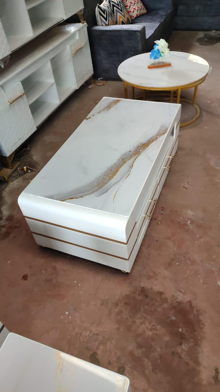 Make a bold statement in your living room with this stunning contemporary coffee table featuring a chic black and white design and sophisticated glass top. This eye-catching center table perfectly blends modern aesthetics with practical functionality for stylish Kenyan homes. Key Features: Bold Two-Tone Design: Striking black and white contrast creates a dramatic focal point in any living space Premium Glass Top: Durable tempered glass surface provides an elegant finish and effortless maintenance Smart Storage Solutions: Features lockable drawers for secure storage of remotes, magazines, coasters, and personal items Open Display Shelf: Central compartment ideal for coffee table books, decorative pieces, or storage baskets Spacious Surface: Wide glass top provides ample space for serving drinks, snacks, and entertaining guests Quality Construction: Robust engineered wood with smooth laminate finish ensures durability and longevity Contemporary Style: Sleek lines and modern color blocking complement minimalist and contemporary interiors Stylish Hardware: Chrome drawer handles add a sophisticated finishing touch Perfect For: Modern living rooms and lounges Apartments and homes in Nairobi and across Kenya Creating a monochrome or contemporary interior theme Those seeking functional coffee tables with hidden storage Coordinating with black and white furniture sets Specifications: Color: Customizable Material: Engineered wood with marble laminate Design: Curved Modern/Contemporary Why Choose Sofa Hub: This coffee table represents our dedication to bringing affordable, high-quality furniture to Kenyan homes. Combining style with storage, it's designed for modern living. We ship countrywide.