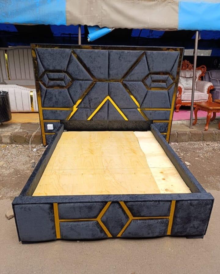 Sleep in style with this Modern 5x6 Bed, a statement piece exclusively available at Sofa Hub Kenya. Designed with a unique geometric headboard pattern and striking black-and-gold accents, this bed combines contemporary aesthetics with superior comfort and strength. Crafted from high-quality materials, the bed frame provides excellent support and long-lasting durability. Its modern upholstered finish adds a touch of luxury, making it perfect for any bedroom — whether in an apartment, modern home, or guest suite. At Sofa Hub, we take pride in delivering both comfort and craftsmanship, ensuring you get furniture that stands out in quality and design. Located in Karen, Nairobi, we offer nationwide delivery across Kenya. Key Features: Elegant 5x6 modern bed design Striking geometric headboard with gold detailing Strong, durable wooden frame for long-term use Padded upholstery for a premium look and feel Perfect centerpiece for modern bedrooms Available in custom colors and finishes on request Nationwide delivery by Sofa Hub Kenya