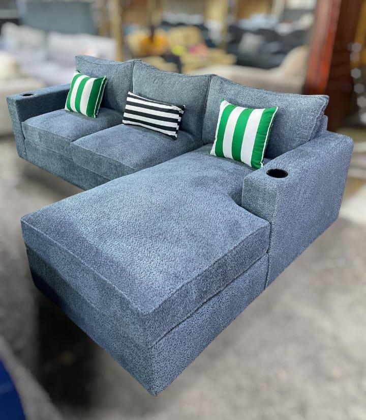 Transform your living room with the Modern L-Shaped Recliner Sofa, exclusively from Sofa Hub Kenya. Designed for style and comfort, this contemporary piece combines premium craftsmanship with functionality — perfect for relaxing with family or entertaining guests. The sofa features plush, high-density cushions for superior comfort and support. Its durable fabric upholstery is soft to the touch, easy to clean, and built to withstand daily use. With built-in cup holders, you can enjoy your favorite drinks without leaving your seat, making it ideal for movie nights or cozy weekends at home. The sofa’s sleek L-shaped design makes it a perfect fit for both small and spacious living rooms. Whether you’re in Nairobi, Karen, or anywhere in Kenya, Sofa Hub ensures fast and reliable nationwide delivery. Key Features: Modern L-shaped design for style and comfort High-density foam cushions for superior relaxation Durable, easy-to-clean fabric upholstery Built-in cup holders for added convenience Comes with decorative throw pillows Strong hardwood frame for long-lasting support Available for customization on order Nationwide delivery across Kenya