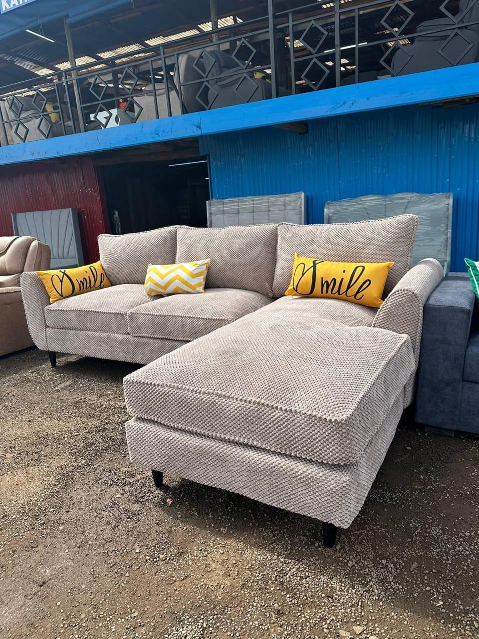 This is a quality and comfortable sofa.It is made of a soft fabric and fiber filled spring cushions.Its a 6 seater.You can choose a color of your choice for customization.