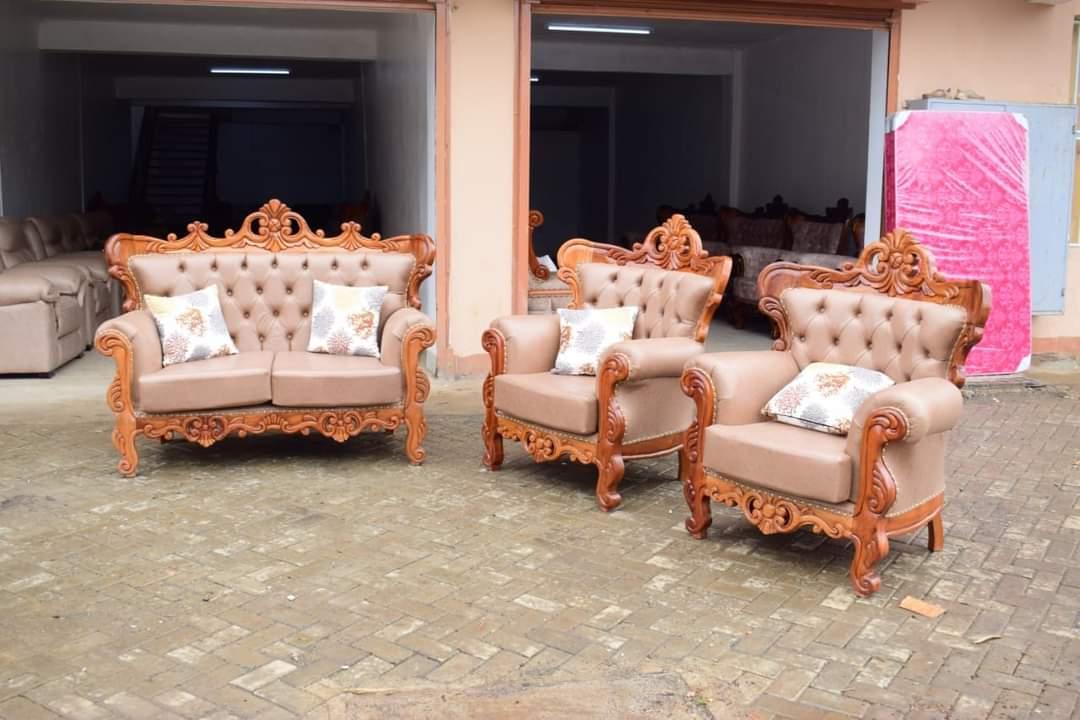Experience timeless elegance with this breathtaking antique-style sofa set, meticulously crafted from 100% pure hardwood mahogany. Handcrafted at Sofa Hub Kenya, Karen, this masterpiece showcases intricate hand-carved details and royal Victorian-inspired design that transforms any space into a palace. Key Features: Pure hardwood mahogany construction - Solid wood throughout for lasting durability Intricate hand-carved details - Ornate scrollwork, florals, and baroque motifs Antique Victorian design - Classic European elegance with Kenyan craftsmanship Button-tufted upholstery - Diamond pattern with crystal/decorative buttons Premium champagne/beige fabric - Luxurious textured upholstery Elaborate carved crest rails - Ornamental crowns and decorative flourishes Rolled armrests - Carved mahogany arms with scrolled details 5-seater set: 2-seater loveseat and 3 matching single chairs Handcrafted in Karen, Kenya - Supporting local artisan excellence Exquisite Craftsmanship: Every curve, scroll, and detail is hand-carved by master craftsmen at our Karen workshop. The rich mahogany wood is carefully selected, shaped, and finished to create furniture that's not just seating, but works of art. The ornate baroque-style carvings showcase traditional woodworking techniques passed down through generations. Perfect For: Luxury homes, executive lounges, bridal suites, upscale hotels, palatial interiors, photography studios, formal living rooms, and collectors of fine antique-style furniture. Design Highlights: The elaborate carved headboards feature flowing acanthus leaves, shell motifs, and rococo flourishes that epitomize classical European furniture design. Combined with button-tufted upholstery and elegant fabric, this set exudes sophistication and grandeur. Why Choose This Antique Masterpiece: This isn't just furniture—it's an investment in artistry. The solid mahogany construction ensures this piece will be treasured for generations, while the handcrafted details make each set unique