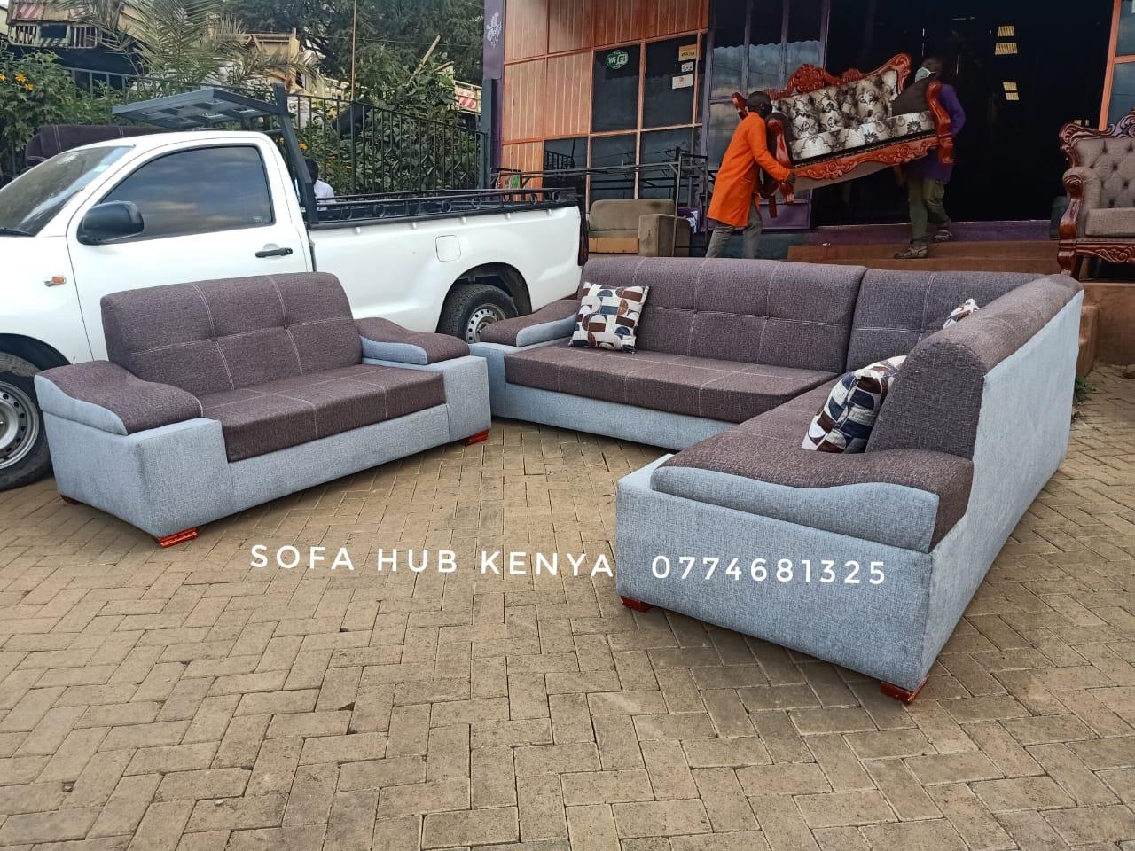 Upgrade your living space with this modern sofa set, thoughtfully designed for both comfort and style. This elegant set combines two-tone upholstery—a sleek blend of warm brown and soft grey fabric—that complements any contemporary home décor. Each sofa features deep, plush cushions and stylish throw pillows, offering maximum comfort for family gatherings or entertaining guests. The solid frame and quality fabric ensure durability and long-lasting use. All our sofas are locally handcrafted in Kenya, and you can customize the color and fabric to match your interior theme. Enjoy free delivery within Nairobi, plus professional setup upon delivery. Key Features: Set: 7 seater L shaped sofa Material: Premium fabric upholstery Cushions: High-density foam for lasting comfort Design: Elegant two-tone modern finish Includes: Matching throw pillows Customization: Available in your preferred colors and fabric Delivery: Free within Nairobi