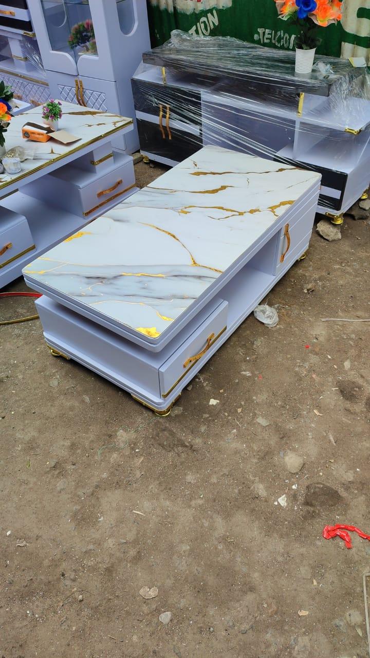 Elevate your living room with this Luxury Marble-Top Coffee Table, exclusively handcrafted by Sofa Hub Kenya. Designed with elegance and functionality in mind, this piece combines a sleek marble-inspired top featuring striking black, white, and gold patterns with a sturdy wooden frame that ensures long-lasting durability. Perfect for both modern and classic spaces, the table includes two spacious drawers and open storage shelves, ideal for keeping your magazines, remotes, and décor items neatly organized. The gold-accent handles and smooth lacquered finish add a touch of sophistication — making it a statement centerpiece for any stylish home. Whether you’re furnishing your home in South C, Ngong Road, Kileleshwa, Kilimani, Lang’ata Road, South B, Nairobi West, or Rongai, this coffee table brings a luxurious yet functional vibe to your living space. Key Features: Elegant marble-effect tabletop with gold and black accents Strong hardwood structure for long-lasting use Two drawers and open storage shelves for convenience Polished gold handles and base detailing for a premium touch Ideal for modern apartments and family living rooms Handmade locally by Sofa Hub furniture experts Delivery available across Nairobi and surrounding areas.